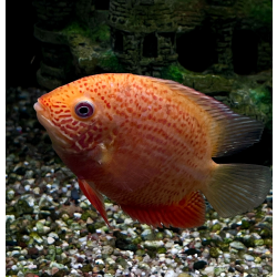 Северум красноточечный – селекционная форма цихлазомы северум (Heros efasciatus). Отличительной особенностью породы является окрас: он представлен многочисленными ярко-оранжевыми или красными точками, расположенными ровными горизонтальными рядами. У северума тело высокое и округлое, поэтому его нередко называют «ложным дискусом».